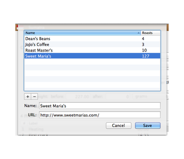 Roaster is an electronic log for home coffee roasters. Use Roaster to keep a log of all of your roasts. Use the timer to time your roasts and mark the phases of the roast. Record information about the roast such as origin, vendor, weight, rating, and images. Record notes about the roast and the coffees you brew from it.